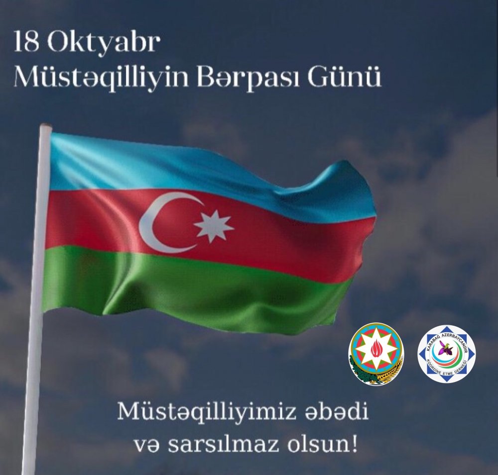 18 Ekim "Azerbaycan Cumhuriyeti'nin Bağımsızlığının Yeniden Kazanılması Günü" vesilesiyle Azerbaycanlı kardeşlerimizi kutlar nice güzel bağımsız ve birlik içinde seneler dilerim.