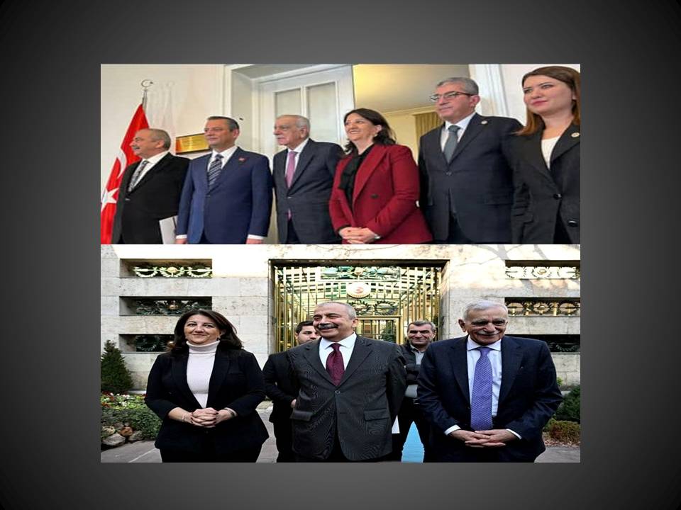 Kapalı kapılar ardındaki bu tezgâhlardan sonra bebek katili ve yaklaşık elli bin kişinin öldürülmesinden sorumlu PKK terör örgütü başı Abdullah Öcalan’ı 28 Aralık 2024 tarihinde İmralı’da iki DEM partili ziyaret etti. Daha sonra bu iki vekil yanlarına Ahmet Türk’ü de alarak TBMM’de siyasi partileri ziyaret etmeye başladılar. Terörle ilişkisi nedeniyle görevden alınan Mardin Anakent Belediye Başkanı Ahmet Türk’ün, ziyaretlere dahil edilmesi ülkemizin ne kadar karanlık ve onursuz bir duruma düşürüldüğünün göstergesidir.