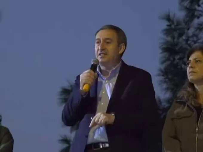 Fotoğraftaki kişi DEM partinin genel başkanı Tuncer Bakırhan. 2013 yılında KCK üst yöneticiliği suçuyla Tekirdağ F tipi cezaevinde hapis yatmış. 30 Mart 2014 yerel seçimlerinde Siirt belediye başkanı seçilmiş ve 16 Kasım 2016 tarihinde "PKK/KCK silahlı terör örgütüne üye olmak" suçlamasıyla tutuklanarak, belediye başkanlığı görevinden uzaklaştırılmıştır. 14 Mayıs 2023 genel seçimlerinde DEM partiden Kars milletvekili seçilmiştir.