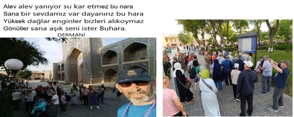 Yine Türk Aleminin manevi mimarları İmam Buhari, İmam Maturidi, Ahmet Yesevi Hazretleri ve onun hocası Arslan Beh’in ve bunların talebelerinin, ne kadar önemli değerler olduğunu yakından görerek müşahade ettik. Sadece Buhara’da 500 tarihi eser ve 3000 İslam dostunun kabri bulunmaktadır.
