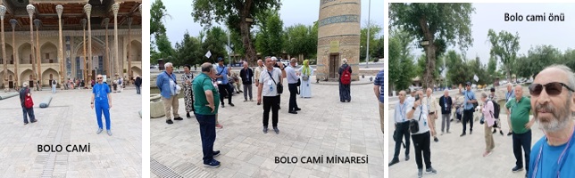 Bolo havuz cami, ark kalesi, Payi Kalan komplekslerinde; Kalan camisi ve minaresi (burası Buhara’nın en büyük camisi. On bin kişi namaz kılabiliyormuş).