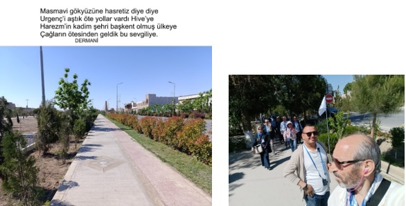 Türkiye ile Özbekistan arasında 2 saatlik bir fark bulunmakta. Onların yerel saati bizden 2 saat önde. Otele yerleşip kahvaltıyı yaptıktan sonra buradan ikinci durağımız olan ve Unesco’nun dünya mirası listesinde bulunan, aynı zamanda Türkmenistan sınırına çok yakın olan Harezm’in kıdem başkenti HİVE’ye hareket ettik.
