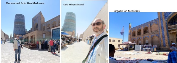 İç kale ve duvarları ve içerisinde bulunan Hive hanlarının yazlık ve kışlık sarayları ve harem bölümlerini gezdik. Şehrin her karesi adeta bir tarih kokuyor. Eserlerin büyük bir kısmı canlı olarak hala ayakta dimdik duruyordu.