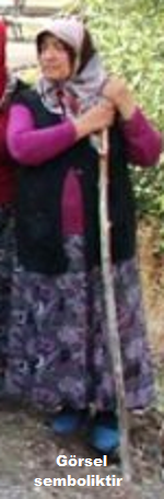 Üzerimde bir gölge hissettim ki; kafamı kaldırdım, Azize Teyzem… Başında kenarları işlemeli yemenisi, yaşadığı hayatın derin izlerini desenlerinde barındıran gömleğinin üzerinde pelerin gibi duran örme yeleği, çiçek desenli basma eteği, arkalarına basılmış, eski, çamur içinde ayakkabılarının üzerine yığılmış yünlü çorapları ve elinde ham ağaçtan yapılmış asası ile yamacın başında; Musa Peygamber'in kadın silueti…