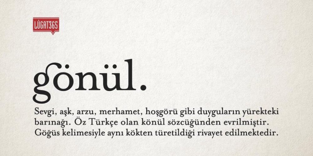 * Gönül (sevgi, aşk, arzu, merhamet, hoşgörü gibi duyguların yürekteki barınağından) * Teveccüh (yüzünü dönme, yönelme)