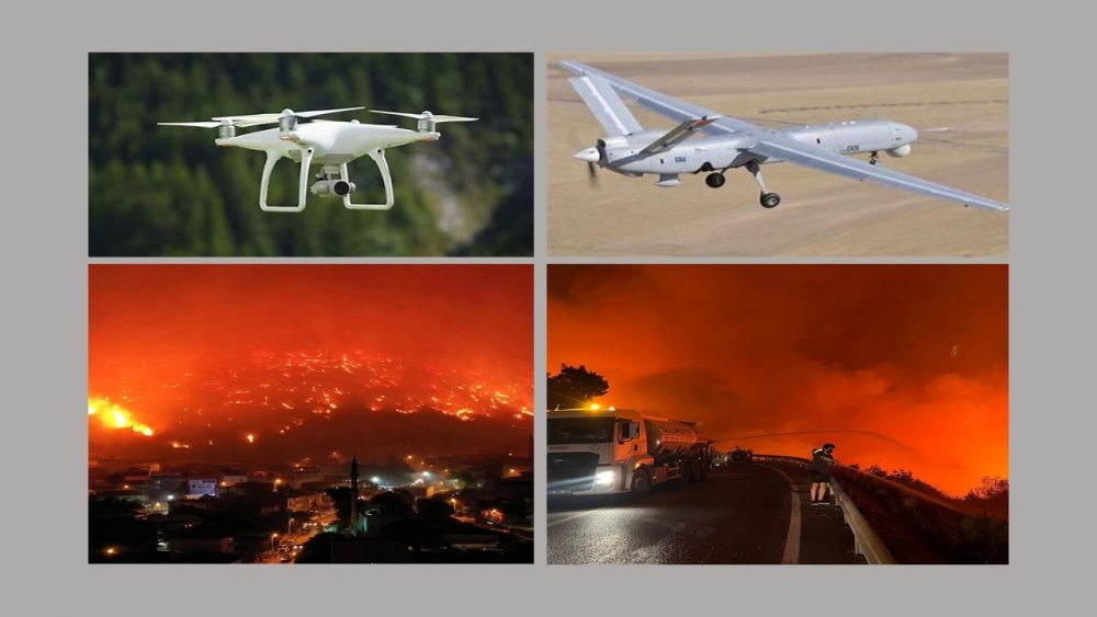 Drone ile gözlemleme ve kontrol yapılabilirken, İnsansız Hava Araçlarıyla (İHA) yangın söndürme topu (bombası), yangın söndürme kapsülü, yangın söndürme roketi kullanılarak yangınlara kısa sürede müdahale edebilmek olanaklıdır. Bugün ülkemizde İHA’larla orman yangınlarının erken tespiti ve gözetimi yapılmaktadır. Çin’de insansız yangın söndürme araçları, 50-100 kg yangın söndürme topu taşıyan modellerle, yüksek binalarda ve orman yangınlarında kullanılmaktadır. ABD’de insansız yangın söndürme araçlarıyla yangının yayılmasını engellemek için önceden belirlenen alanlara yangın söndürme kapsülleri bırakılmaktadır. Bu kapsüller yangını yönlendirmek ve söndürmek için kullanılmaktadır. Avustralya’da orman yangınları için erken önlem ve kontrol amaçlı drone kullanılmaktadır.