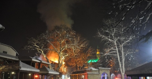 Bursa’nın İnegöl ilçesinde tarihi İshakpaşa Külliyesinin karşısındaki, üst ve alt katlarında 4 işyerinin bulunduğu 185 yıllık tarihi bina gece saatlerinde çıkan yangında küle döndü. Ahşap binadan yükselen alevler geceyi aydınlatırken, yangının iki banka şubesine de sirayet etme durumu var.