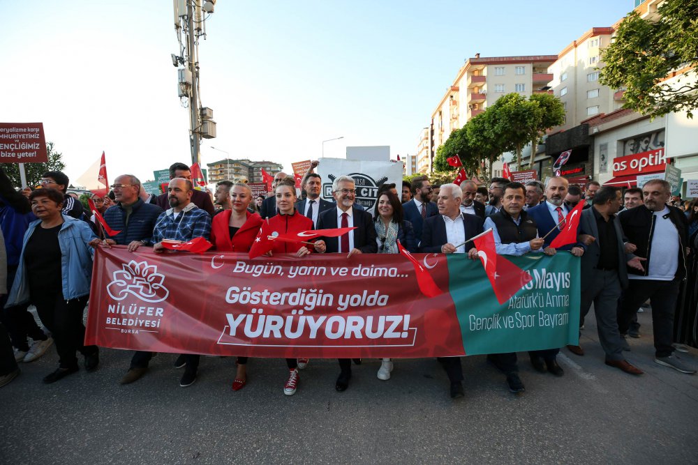 19 Mayıs Atatürk'ü Anma Gençlik ve Spor Bayramı etkinlikleri, Fatih Sultan Mehmet Bulvarı’nda düzenlenen yürüyüşle başladı. Yürüyüş öncesi Nilüfer Belediye Başkanı Turgay Erdem, spor ve kardeşliğin yaşatılması adına Nilüfer Belediyespor’un bisiklet sporcularına Mudanyalı sporculara teslim etmeleri için meşale verdi. Sporcular da bu meşaleyi Nilüfer-Mudanya sınırında sporculara teslim edip onların meşalesini aldı.