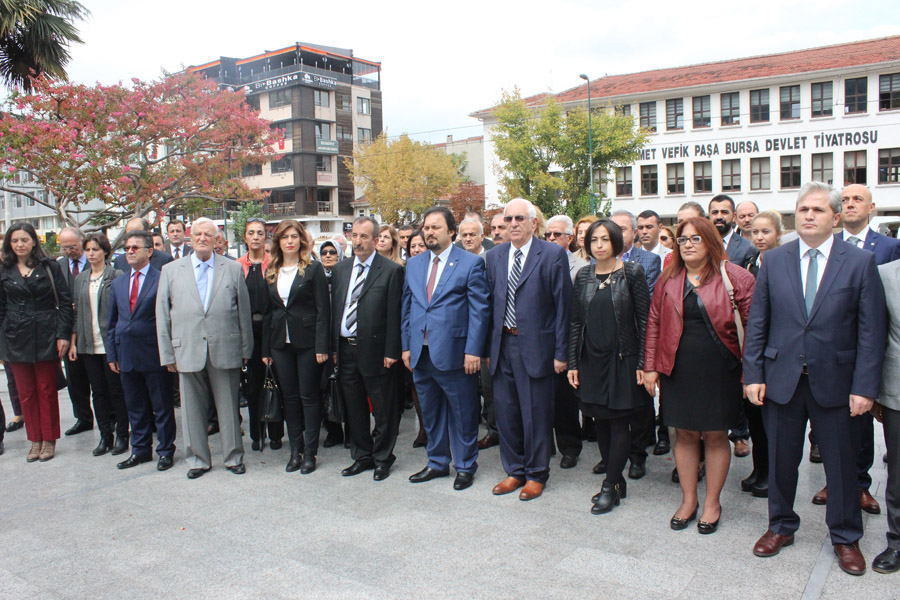 Baro’nun yeni yönetimi, devir teslim töreni öncesi Heykel’deki Atatürk Anıtı’na çelen sunarak, Saygı duruşunda bulundu ve İstiklal Marşı’nı okudu. Çok sayıda avukatın da hazır bulunduğu çelenk sunma töreninin ardından Baro Evi’ne geçildi.