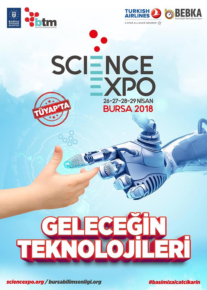Bu güne dek “Bursa Bilim Şenliği” olarak gerçekleştirilen ve bilimi sokağa indiren etkinliğin sınırlarını aşması ve daha geniş kitlelere ulaşması ile bu yıl 7.si yapılacak Bursa Bilim Şenliği bundan böyle “Science Expo’” adıyla anılacak. Dünyanın sayılı Türkiye’nin en büyük bilimse etkinliği, “Geleceğin Teknolojileri” ana konseptiyle, 26 – 29 Nisan 2018 tarihleri arasında TÜYAP Fuar Merkezi’nde gerçekleştirilecek. “Science Expo” kapsamında akıllı uygulamalar, yazılım mühendisliği, arttırılmış gerçeklik, sanal gerçeklik, robotlar, endüstri 4,0, biyoteknoloji ve yapay zekâ alt başlıkları Bursa’nın bilimsel marka etkinliğine değer katacak.