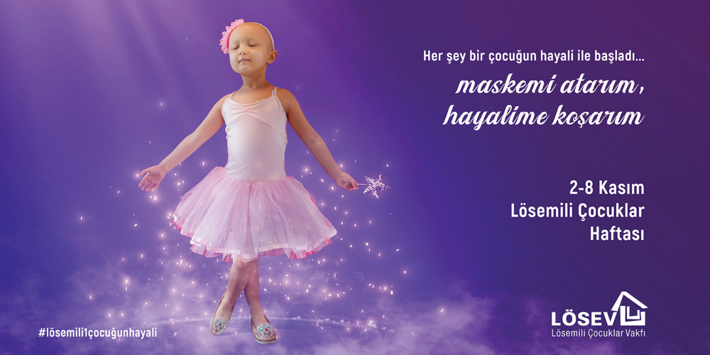 LÖSEV, 2-8 Kasım Lösemili Çocuklar Haftası'nda lösemi hastalığı ile mücadele eden çocuklara destek ve lösemiye karşı farkındalık oluşturmak adına bu yıl “Maskemi Atarım. Hayalime Koşarım” mesajı ile dikkat çekmeye devam ediyor.