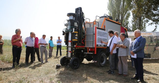 Toplantı sonrasında fay arama çalışmalarının yapıldığı sismik enerji kaynağı donanımlı araç ile arazide uygulama da gerçekleştirildi.