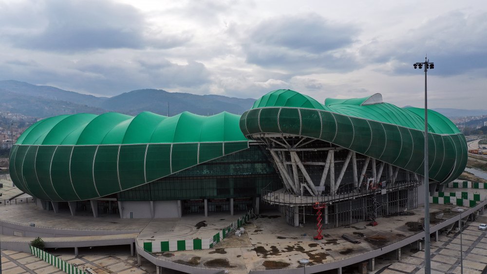 Bursa Büyükşehir Belediyesi tarafından yaptırılan 400 bin metrekare proje alanı ve 190 bin metrekarelik inşaat alanıyla Bursa’nın en büyük anıtsal yapılarından biri olan, takımın simgesiyle özdeş olarak timsah görünümünde inşa edilen stadyumda, timsah kafasını oluşturan bölümün inşaatı yeniden başladı. Bursa kamuoyunda en fazla tartışılan konulardan birinin de stadyumdaki timsah kafası bölümünün ne zaman tamamlanacağı olduğunu belirten Büyükşehir Belediye Başkanı Alinur Aktaş, yeniden başlayan çalışmaları yerinde inceledi. Fen işleri Dairesi Başkanı Feridun Tarım’dan çalışmalar hakkında bilgi alan Başkan Aktaş, işin bitiminin 2020 Aralık ayı olarak öngörüldüğünü ancak çalışmaları daha önce tamamlamayı arzuladıklarını söyledi.