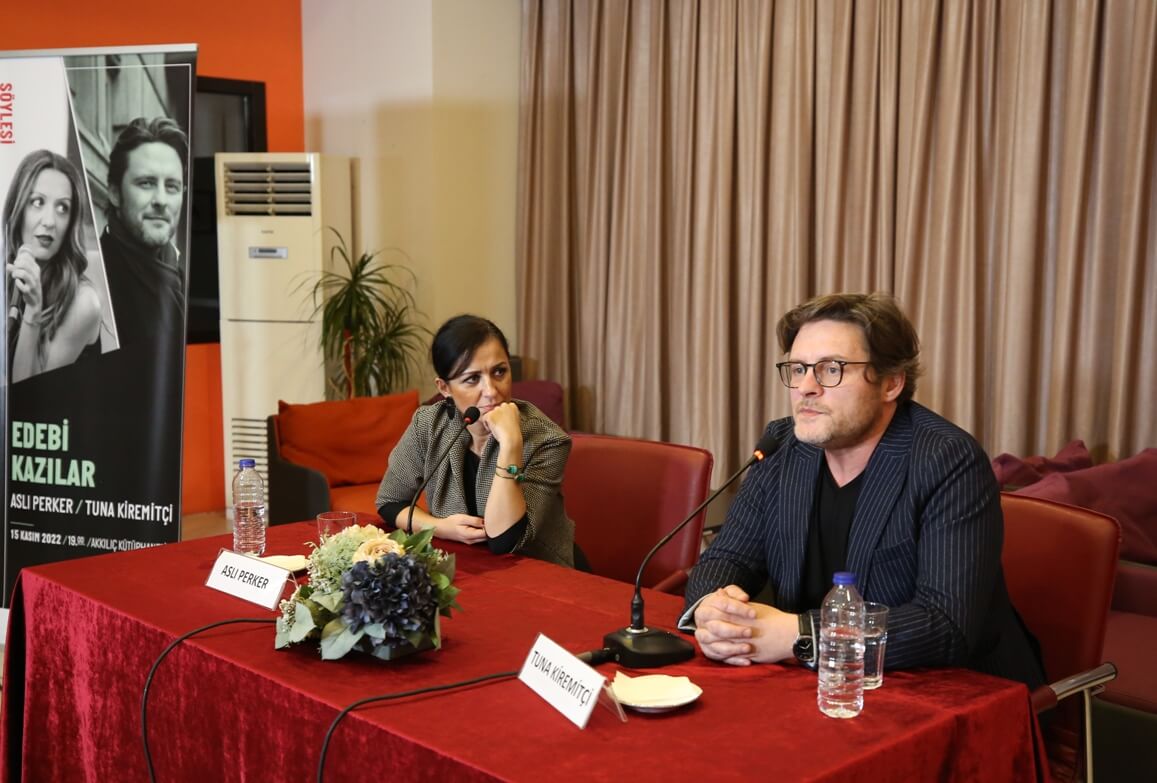Nilüfer Belediyesi’nin düzenlediği Edebi Kazılar söyleşisine konuk olan yazarlar Tuna Kiremitçi ve Aslı Perker, kaleme aldıkları Flamingolar Pembedir ve Perinin Ölümü kitapları üzerine keyifli bir söyleşiye imza attı.