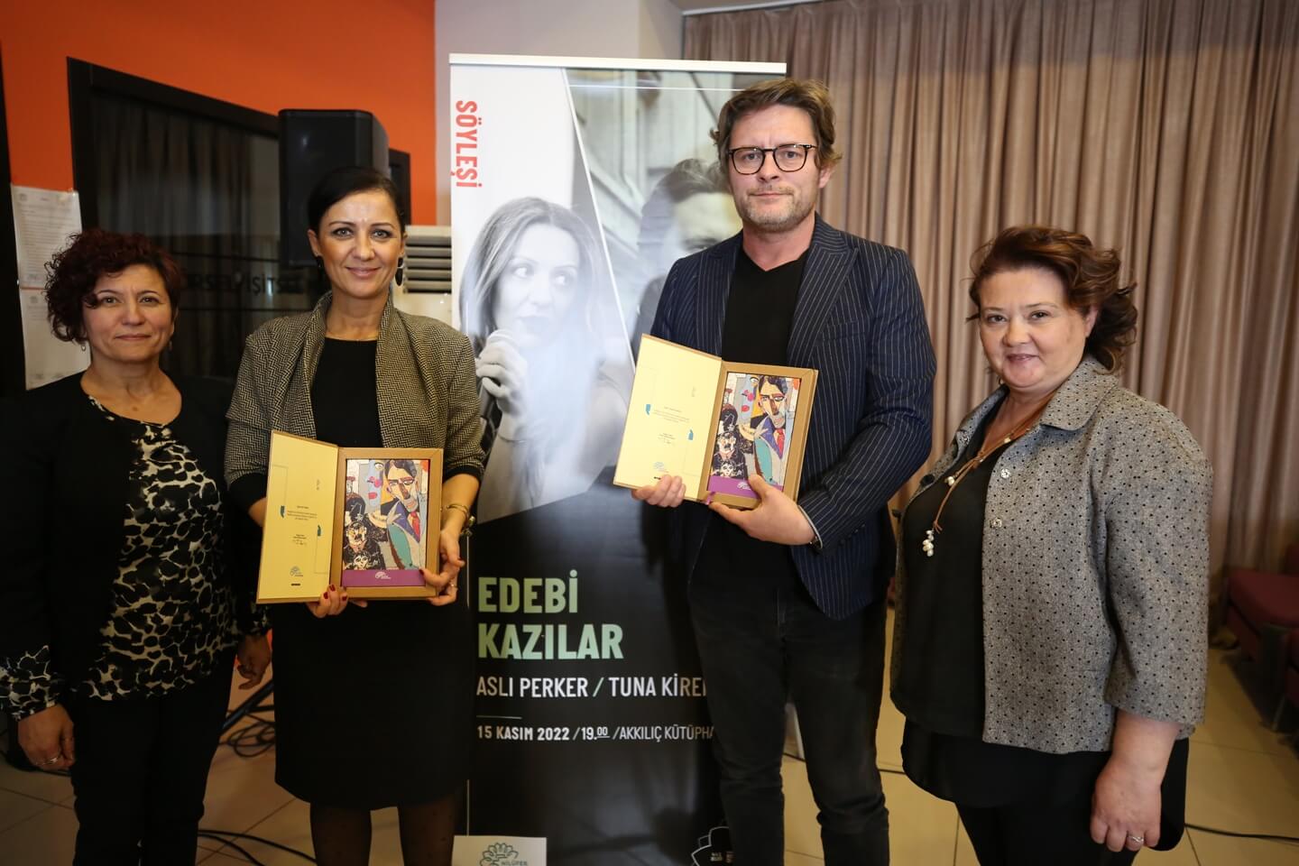 Nilüfer Belediyesi Kütüphane Müdürlüğü’nün, okurları, yazarlarla buluşturan Edebi Kazılar etkinliği bu yılın son söyleşisiyle Nilüfer Akkılıç Kütüphanesi’nde gerçekleşti. Çağdaş Türk edebiyatının değerli yazarlarından Tuna Kiremitçi ve Aslı Perker, Bursalı okurlarıyla buluşarak Flamingolar Pembedir ve Perinin Ölümü kitapları üzerine konuştu.