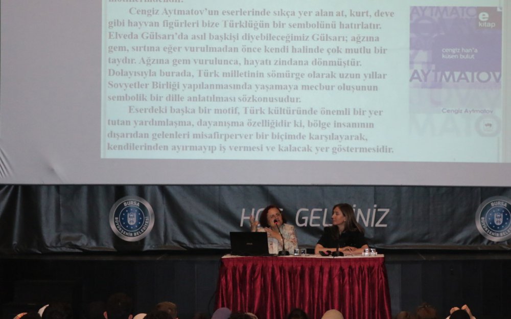 Bursa Büyükşehir Belediyesi, Türk dünyası edebiyatı denilince ilk akla gelen isimlerden olan Cengiz Aytmatov’u ölümünün 14’üncü yıldönümünde düzenlenen konferansla andı. Tayyare Kültür Merkezi’nde düzenlenen anma programında; Uludağ Üniversitesi Öğretim Üyesi Prof.Dr. Nesrin Karaca ve Ankara Hacı Bayram Veli Üniversitesi’nden Prof.Dr Hülya Kasapoğlu Çengel, Cengiz Aytmatov’un hayatını ve edebi yönünü anlattı.