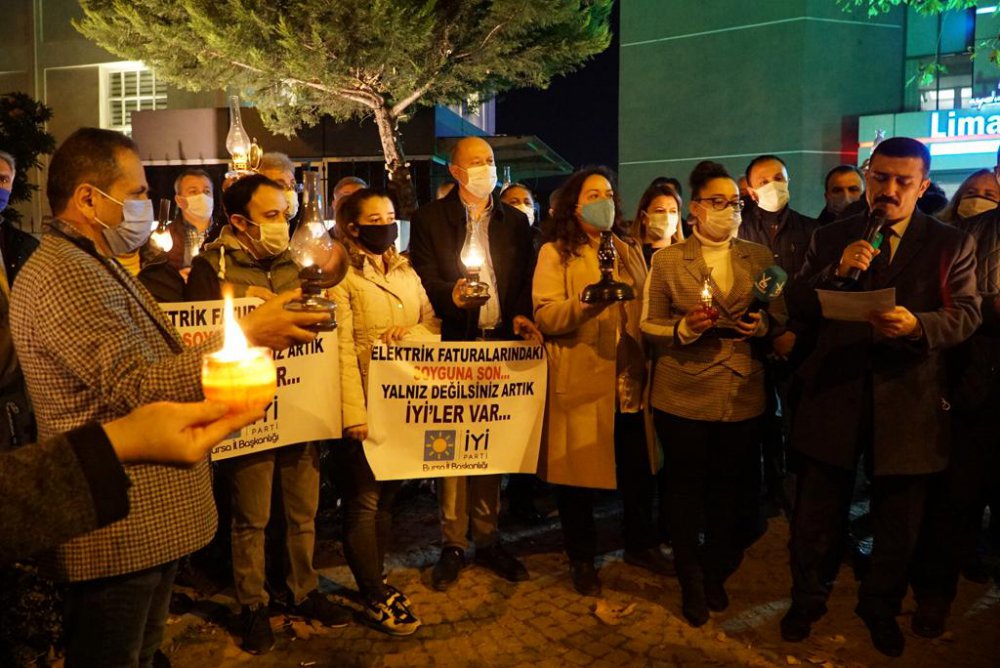 İYİ Parti Bursa Teşkilatı, düzenlediği ‘gaz lambalı’ protesto eylemiyle, elektrik şirketlerinin keyfi harcamaların faturalara yansıtılmasını kınadı.