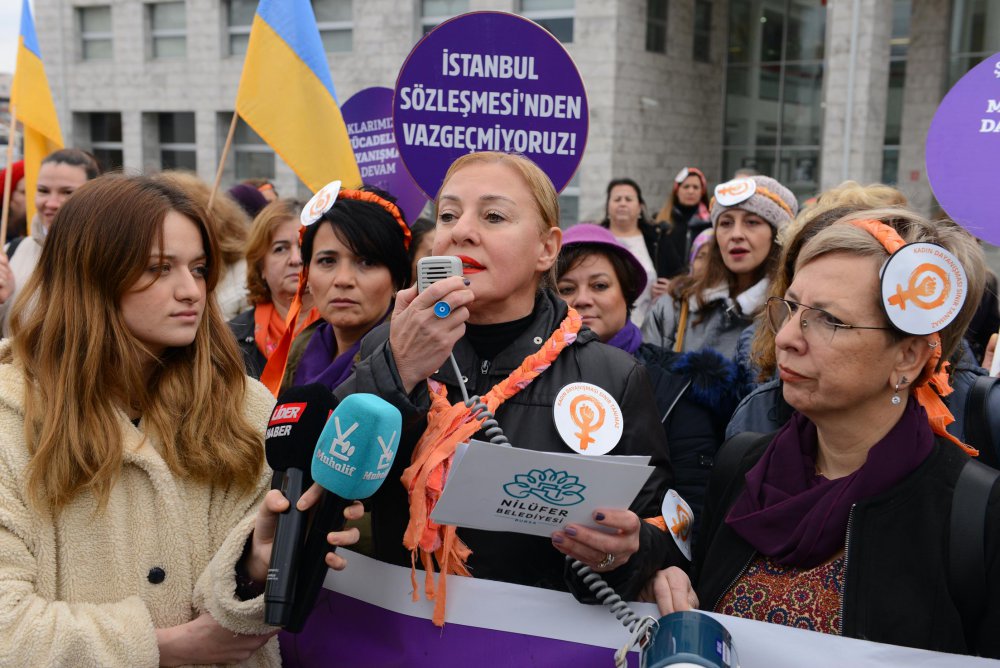 İstanbul Sözleşmesi’nin, hükümet tarafından feshedilmesinin, kadın ve erkekler arasındaki ezme/ezilme ilişkisinin varlığının göstergesi olduğunu dile getiren Altun, “Bu sözleşmenin kaldırılması erkek iktidarın egemenliğini güçlendirme eylemidir. Bizler, katillerin sırtını sıvazlayan eril politikalar yüzünden daha fazla eksilmemek için mücadele ediyoruz. İsyanımız ve direnişimiz, dünyanın başka bir coğrafyasındaki kadın mücadelesini besleyip büyütecek. Çünkü kadın dayanışması sınır tanımaz” ifadelerini kullandı.