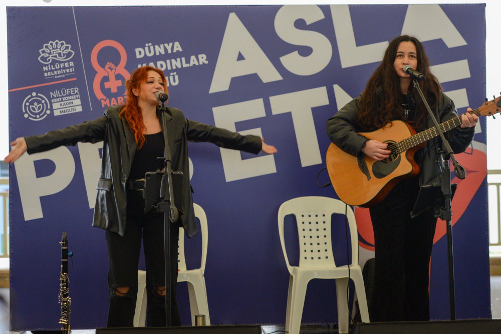 Etkinliğe katılan Nilüfer Belediye Başkan yardımcısı Dr. Sibel Özer de “8 Mart Dünya Kadınlar Günü, ‘Size önem veriyoruz’ diyen erkeklerin günü değil, eşit koşullarda çalışma ve ayrımcılığa uğramadan yaşama hakkını talep ettiğimiz gündür. Kadını iş yaşamında, evde ve sosyal alanlarda özgür ve eşit kılacak günler için yılmadan mücadeleye devam edeceğiz” dedi. Barış Kadın Bandosu’nun da katılımıyla coşkulu geçen etkinlik “RdnBlack” müzik gurubunun etkileyici konseri ile sona erdi.
