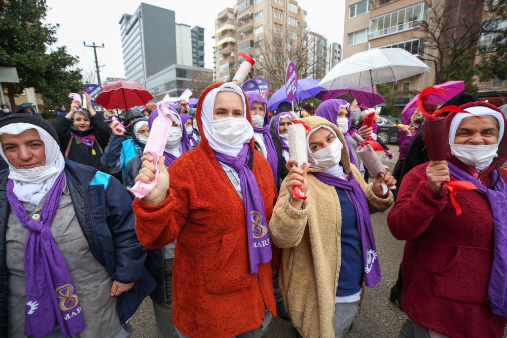 Yoğun yağmur altında yapılan yürüyüş, Fatih Sultan Mehmet Bulvarı’nda Nilüfer Kent Konseyi önünde başladı. Kadına yönelik şiddete ve cinsiyet ayrımcılığına karşı sloganlar ve şarkılar eşliğinde Nilüfer Belediyesi İhsaniye Pazar Alanı’na kadar süren yürüyüşün ardından, Nilüfer Kent Konseyi Kadın Meclisi Başkanı Serpil Altun, bir basın açıklaması yaptı. Altun, dünyaya barış umudu aşılayan bütün kadınları ve özellikle savaş şartları altında erkeklerle omuz omuza bağımsızlık mücadelesi veren Ukraynalı kadınları selamlayarak başladığı açıklamada, İstanbul Sözleşmesi’nin fesih kararının Türkiye’de kadınlar açısından yıkıcı bir süreç başlattığını belirtti. “Kadın cinayetlerinin ve ev içi şiddettin artmasına rağmen önleyici ve koruyucu tedbirler uygulanmadı” diyen Altun, 2021 yılında Türkiye’de 280 kadının öldürülmesi, 217 kadının ise şüpheli şekilde ölü bulunmasına, 2022’nin ocak ve şubat aylarında 49 kadının öldürülmesi, 49 kadının da şüpheli şekilde ölü bulunmasına dikkat çekti.