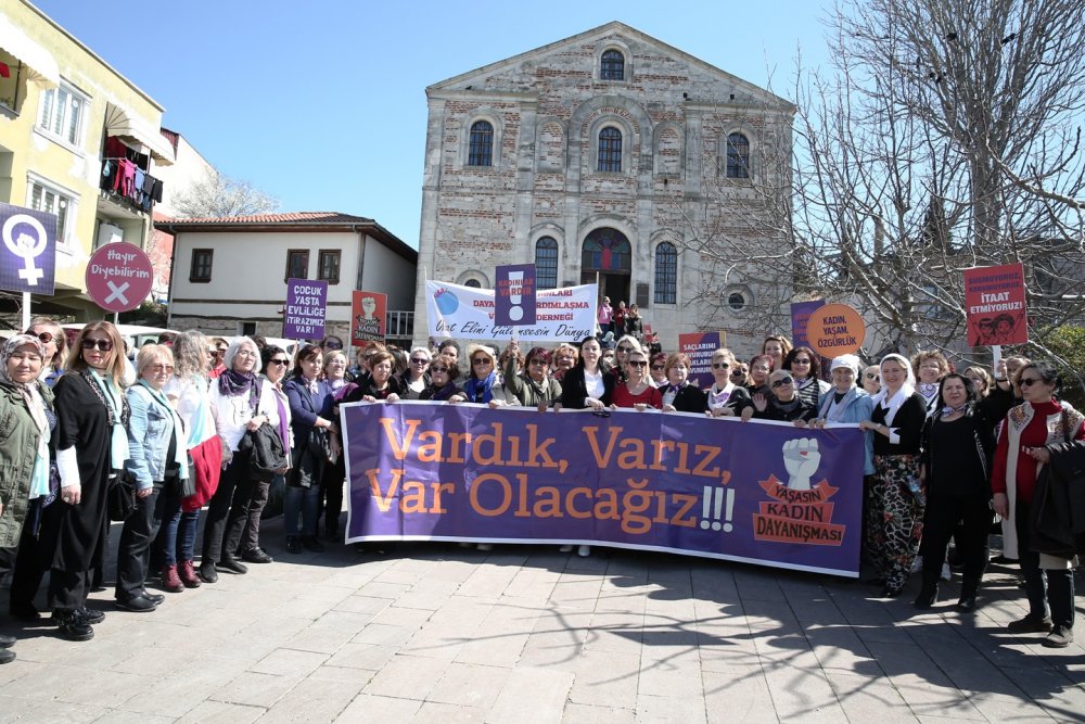 “Kadın, yaşam, özgürlük”, “Susmuyoruz korkmuyoruz itaat etmiyoruz”, “Çocuk - yaşlı evliliğine itirazımız var” yazılı dövizler ve “Vardık varız var olacağız” yazılı pankartla yürüyen kadınlar “Yaşasın Kadın dayanışması, varolsun kadınlar” sloganları atarken çevredeki vatandaşlar da alkışlarla kadınlara destek verdi.