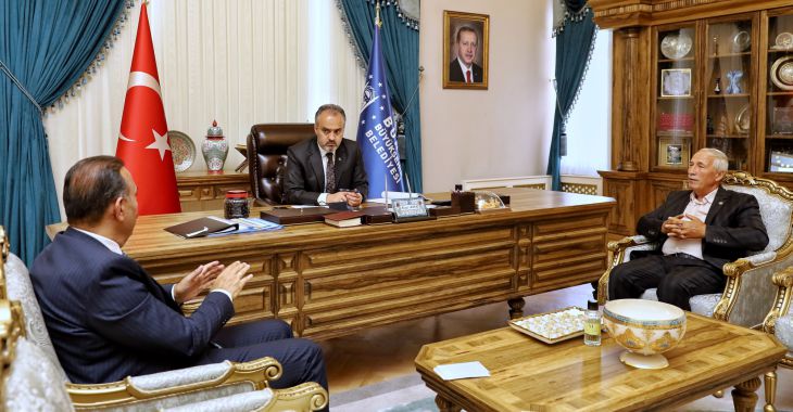 Bursa Tarım ve Orman Müdürü Hamit Aygül, beraberindeki Mudanya Ziraat Odası Başkanı Raif Döner ile birlikte Bursa Büyükşehir Belediye Başkanı Alinur Aktaş’ı ziyaret etti. Büyükşehir Belediyesi Kırsal Hizmetler Dairesi Başkanı Düşünsel Şentürk ile TARIM A.Ş. Genel Müdürü Fetullah Bingül’ün de hazır bulunduğu ziyarette, Tarım ve Orman İl Müdürlüğü tarafından geçtiğimiz yıl çocuklara zeytini sevdirmek için başlatılan kurutulmuş zeytin projesi ele alındı. Önemli bir başarı sağlanan projenin ticarileştirilmesi, ürünün Türkiye ve dünya pazarlarına açılabilmesi yolunda atılacak adımların ele alındığı toplantıda, bu konuda Büyükşehir Belediyesi ile Tarım ve Orman İl Müdürlüğü arasında işbirliği yapılması kararlaştırıldı.