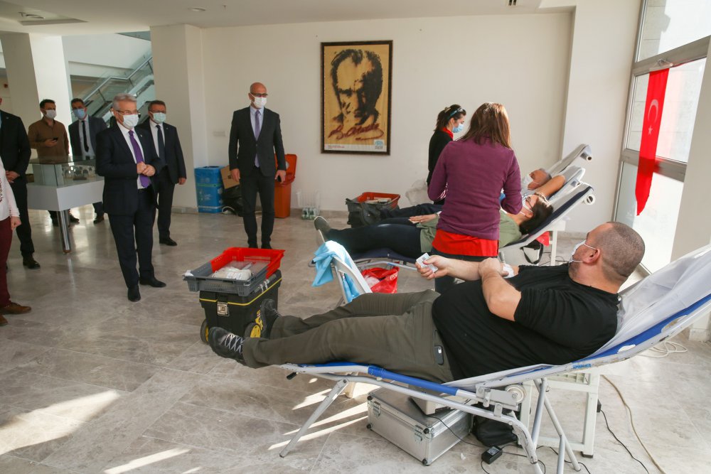 Nilüfer Belediye Başkanı Turgay Erdem de kan alma birimini ziyaret ederek, destek olan çalışanlara teşekkür etti.