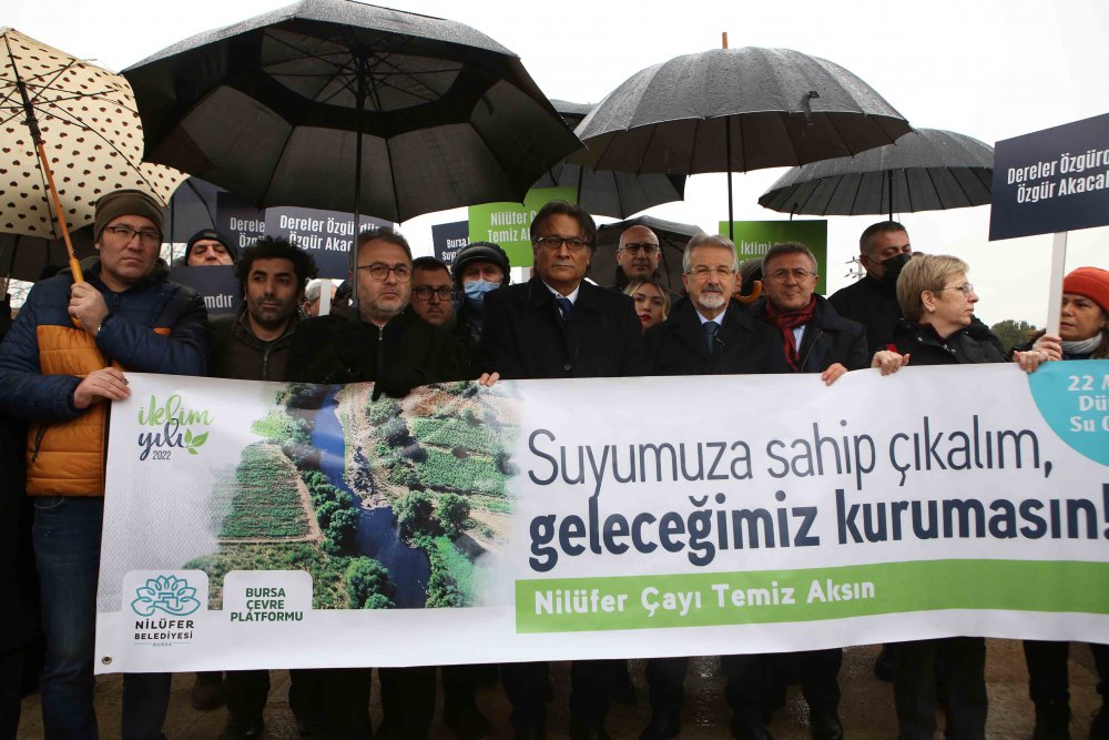Nilüfer Belediyesi ve Bursa Çevre Platformu, ’22 Mart Dünya Su Günü’nde ortak bir basın açıklaması yaparak, Nilüfer Çayı’ndaki kirliliğe dikkat çekti.