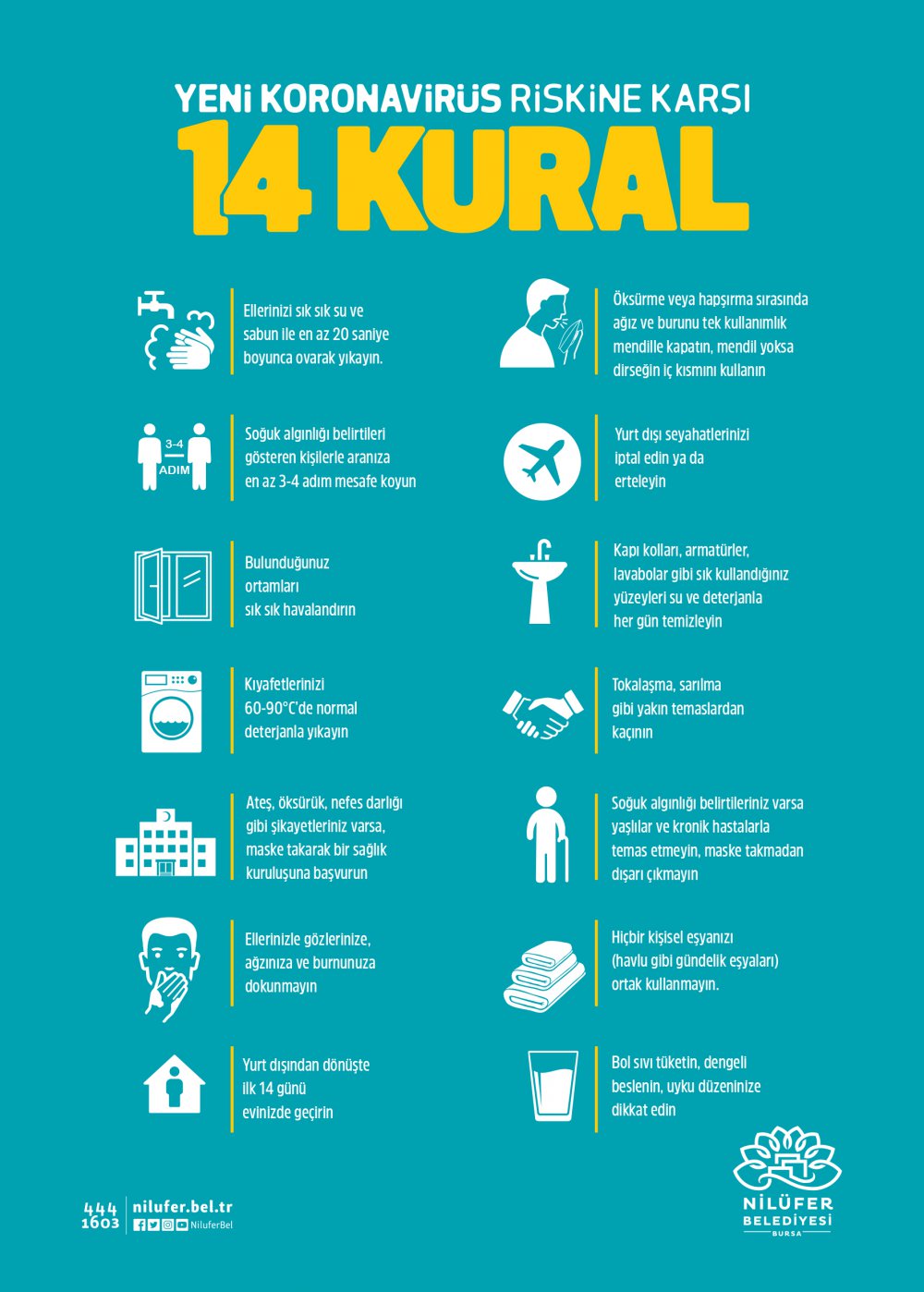 Nilüfer Belediyesi Koronavirüs salgınına karşı vatandaşlara hijyenik el sıvısı, maske, sabun ve eldivenden oluşan paketleri dağıttı. Vatandaşlara ayrıca Koronavirüs salgını ile ilgili almaları gereken önlemlere ilişkin broşürler de verilerek kurallara uymaları istendi.