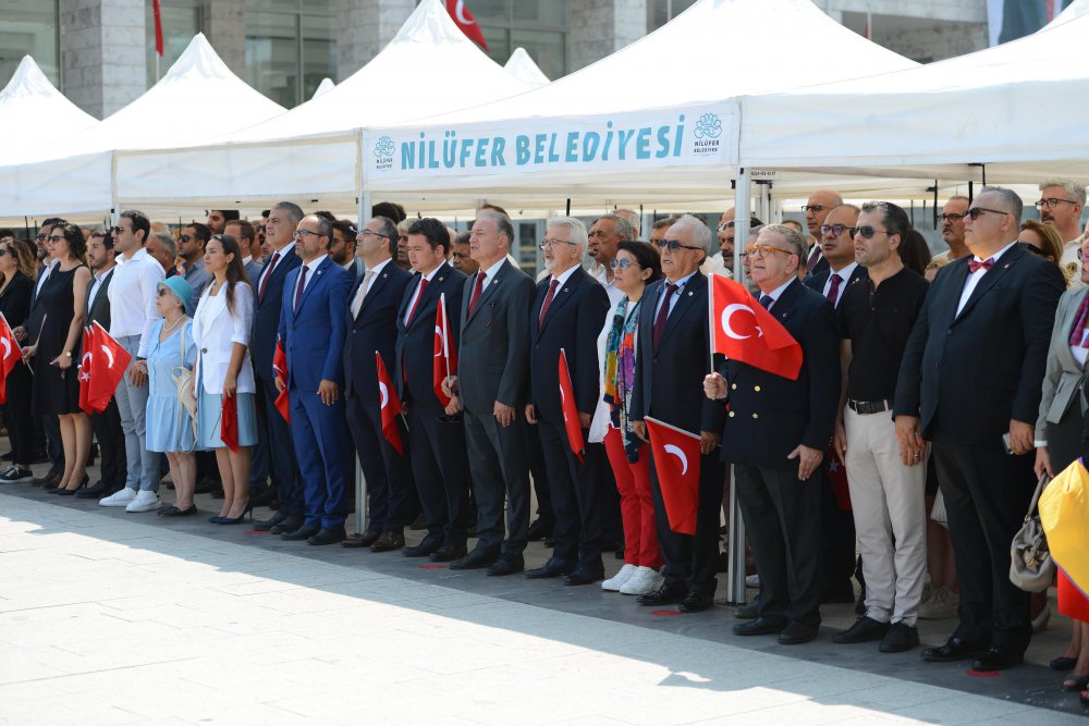 Türk milletini sömürge durumuna düşmekten kurtaran büyük zaferin 100. yılı Nilüfer’de coşkuyla kutlandı. Atatürk Anıtı önünde düzenlenen törende konuşan Nilüfer Belediye Başkanı Turgay Erdem, “Cumhuriyet kazanımlarına her zaman sahip çıkacağımızı bir kez daha ifade etmek için buradayız” dedi.