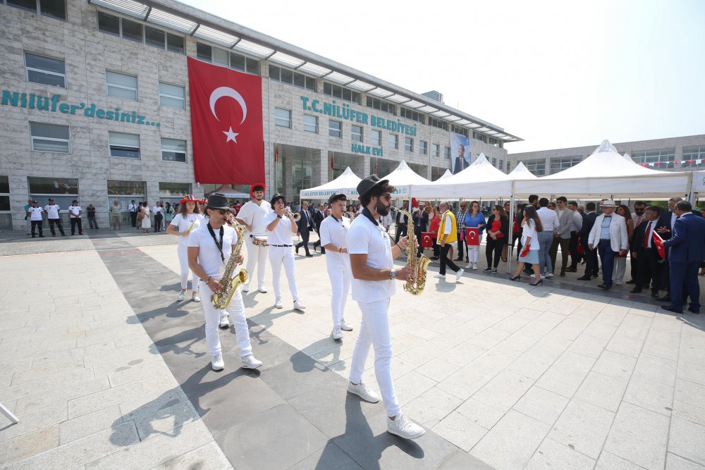 Konuşmaların ardından alanda bir gösteri yapan Nilüfer Bando, törene katılanlara Zafer Bayramı coşkusu yaşattı.