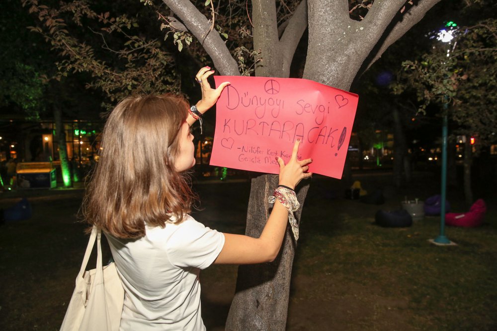 Etkinlikte, Gelişigüzel Sanatlar Derneği’nden Ersu Eren ile Raşit Çubukçu barışa dair şiirler okudu. 1 Eylül Dünya Barış Günü etkinliğinde Ceren Toksöz ve Ümit Büyükkoyuncu da, Barış İçin Dünya Müzikleri ile katılımcıların karşısına çıkarak, herkese müzik keyfi yaşattılar. Etkinliğin sonunda gençler, “Dünyayı sevgi kurtaracak”, “Umut yeşerteceğiz, Barışı getireceğiz” gibi barışa ilişkin mesajların yer aldığı kartonları parktaki ağaçlara astılar.