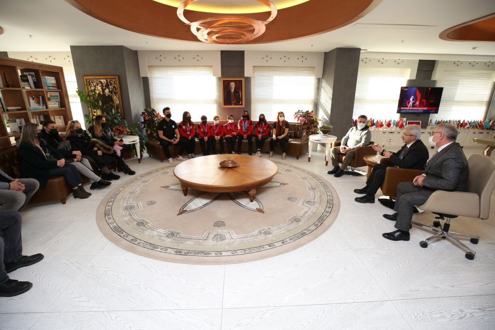 Turnuvalarda Nilüfer’i başarılarıyla temsil eden sporcular, antrenörleri Tayfun Terim ve Aslı Şakar ile birlikte Nilüfer Belediye Başkanı Turgay Erdem’i makamında ziyaret ederek, sevinçlerini paylaştı. Nilüfer Belediyespor Yüzme Takımı’nın elde ettiği başarılarla gururlandıklarını belirten Başkan Turgay Erdem, antrenör ve sporcuları kutladı. Sporcuların, çalışmalarını en iyi şartlarda sürdürmeleri için tesislerde yenilemeler yapıldığını ifade eden Başkan Erdem, Milli takımlara sporun çeşitli branşlarında başarılı sporcular yetiştirmeye devam edeceklerini söyledi. Nilüfer Belediye Başkanı Turgay Erdem, antrenör ve sporcuları başarılarından dolayı ödüllendirdi.