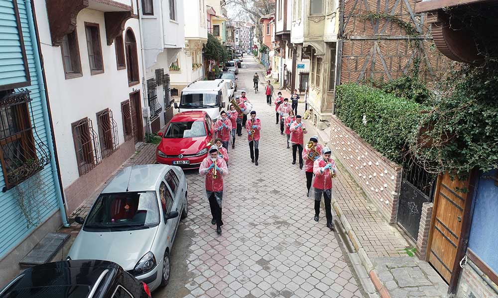 Koronavirüs tehlikesine karşı “Evde Kal” uyarılarını dikkate alarak önlem alan vatandaşlara moral konseri verdi. Türkiye’nin ilk sivil bandosu olan Tarihi Mudanya Bandosu’nun geçtiği sokaklarda konseri izleyen Mudanyalılar, alkış ve oyunlarla şarkılara eşlik etti.