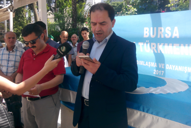 Namazdan sonra bir basın açıklaması yapan "Bursa Irak Türkleri Kültür ve Dayanışma Derneği Başkanı " İSAM ABDÜLKADİR Telafer'e de giren IŞİD teröristlerinin Türkmen Bölgelerinde 2014 yılından bu yana baskı ve zulümler yaptığını söyledi.