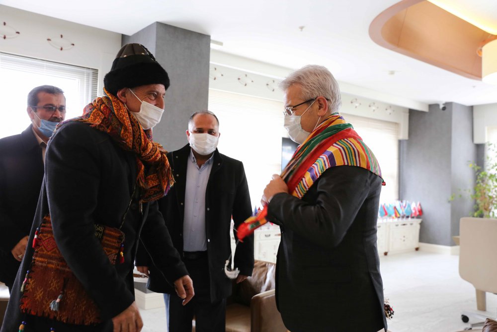 Nilüfer Belediye Başkanı Turgay Erdem, Ertuğrul Gazi Karakeçili Yörük Türkmen Derneği Yönetim Kurulu Üyelerini ağırladı. 4 ay önce kurulan yeni bir dernek olduklarını söyleyen Bursa Ertuğrul Gazi Karakeçili Yörük Türkmen Derneği Başkanı Cevat Canbaz, kökleri yüzlerce yıl geriye giden kadim bir kültürün temsilcilerini olduklarını ifade etti. Dernek Başkanı Cevat Canbaz, Nilüfer’de Yörük Türkmen kültürünü yaşatacak etkinlikler ve faaliyetler için Başkan Turgay Erdem’den destek istedi.