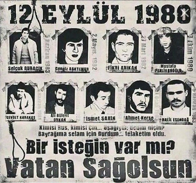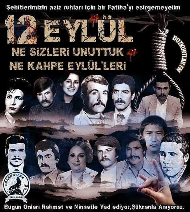 Eylül, evet, bu güzellikler içerisinde bir başka eylül daha vardır. Bu eylül, hiç de hak etmediğimiz bir zulmü yaşatan, darağacındaki 9 yiğidi hatırlatan kara ve kahpe 12 Eylül'dür...