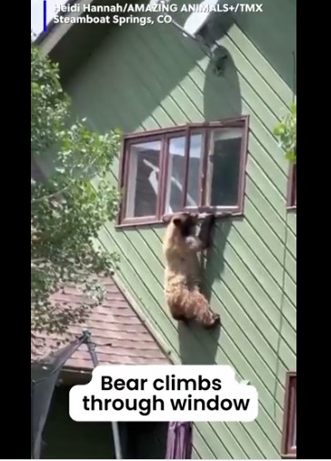 ABD'nin Colorado eyaletinde bir ayı çarşamba günü eve girip ziyafet çekti. Dev hayvan 2. kattaki camdan sarkıp evden kaçmaya çalışırken görüntülendi.