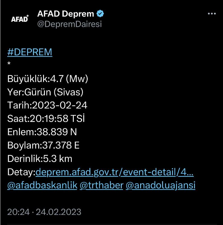 Sivas'ın Gürün ilçesinde bu akşam bir deprem daha yaşanıldı.