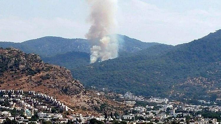 Bodrum'da ormanlık alanda yangın çıktı. Ekipler yangına müdahale ediyor.