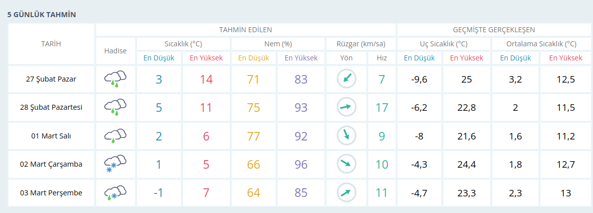 Bursa için tahmin edilen 5 günlük hava tahmin raporu şöyle;