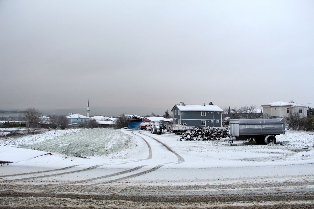 İstanbul'un Silivri ve Çatalca ilçelerinde başlayan kar nedeniyle bazı yollar beyaza büründü.