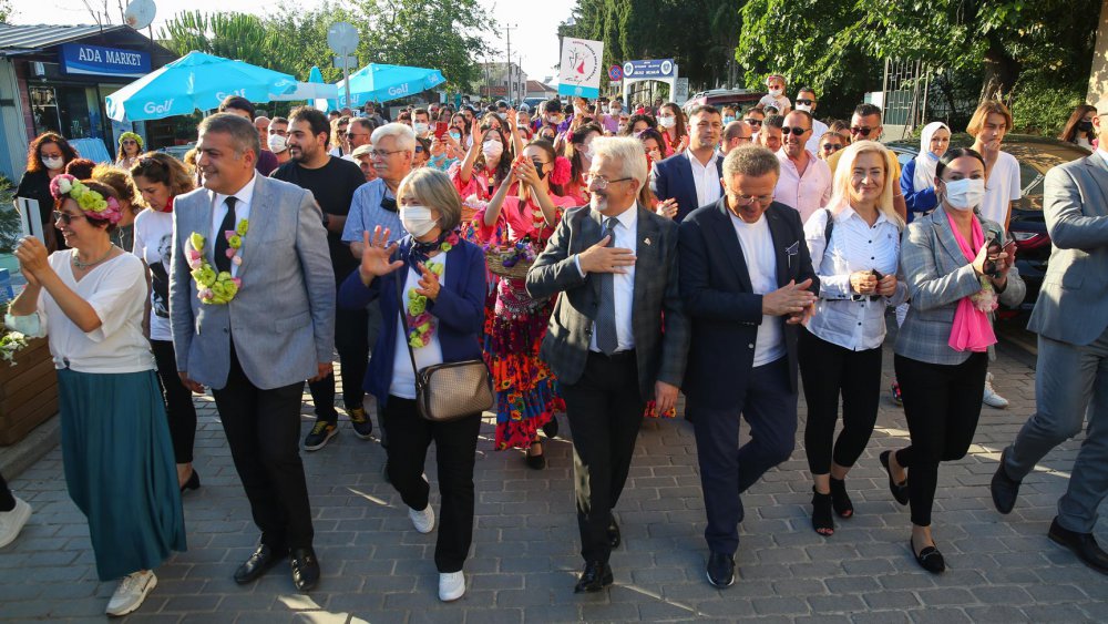 Nilüfer Belediyesi Roman Orkestrası’nın müzikleri eşliğinde Ünallar İlkokulu önünden başlayan coşkulu ve kalabalık şenlik yürüyüşü, Gölyazı Meydanı’nda sona erdi. Yürüyüşe katılanlar, rengârenk çiçeklerle donanmış Gölyazı’nın sokaklarında, bol bol hatıra fotoğrafı çektirdi. Katılanlara sardunya ve petunya cinsi saksı çiçeklerinin armağan edildiği yürüyüşün ardından, şenliğin açılış konuşmasını yapan Nilüfer Belediye Başkanı Turgay Erdem, sözlerine “Gölyazı bizim gözbebeğimiz” diyerek başladı.