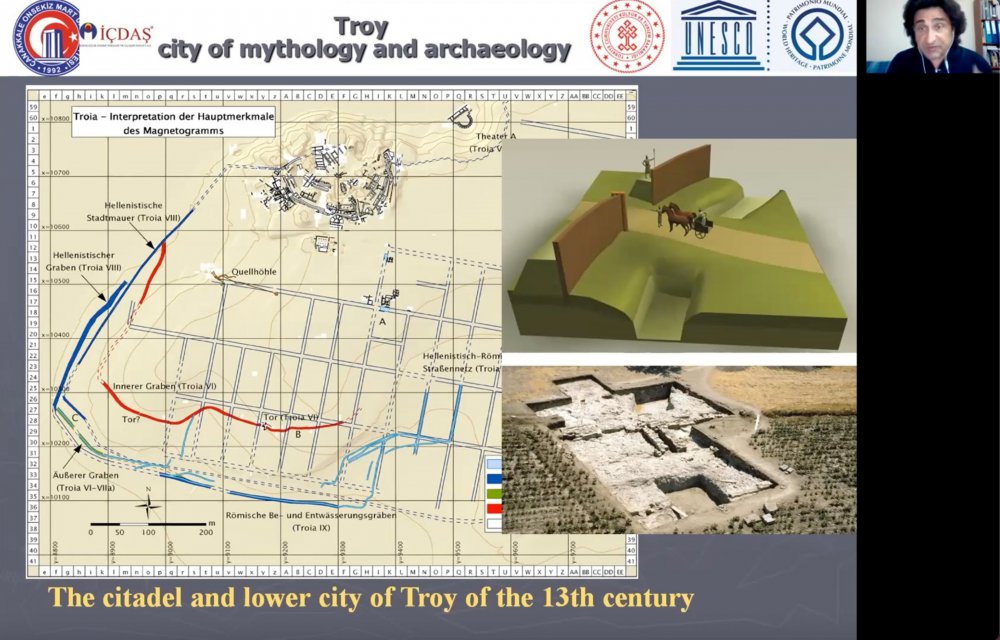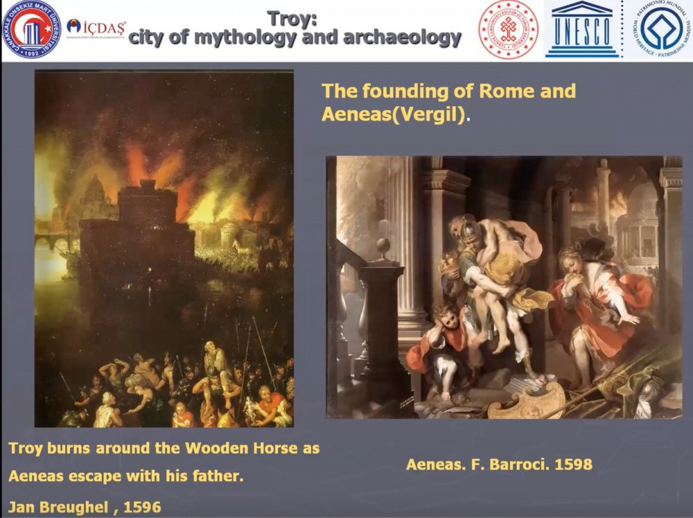 UNESCO Dünya Mirası listesinde yer alan Troya Antik Kenti’nin Kazı Başkanı Prof. Dr. Rüstem Aslan’ın konuşmacı olarak katıldığı programda kent siyasal ve kültürel tarihinin yanı sıra büyük öneme sahip arkeolojik buluntuları ışığında tüm detaylarıyla ele alındı. Roma ve Yunan mitolojisinde de büyük üne sahip olan ve Troya kentinde geçen Troya Savaşı ve savaşın önemli isimleri hakkında da bilgi paylaşan Prof.Dr. Aslan, bunların efsaneden ileriye geçemediğini çünkü Troyalılar hakkında yazılı bir kaynak bulunmadığını dile getirdi. İki yüz yıldır Troya antik şehrinde incelemelerde bulunan arkeologların bölgeyi nasıl ortaya çıkardığını aktaran Prof.Dr. Aslan, M.S. 5. yüzyılda yaşanan deprem ve sel felaketleri sebebiyle şehrin denizi erişiminin kesildiğini ve zamanla terk edildiğini belirtti.