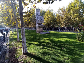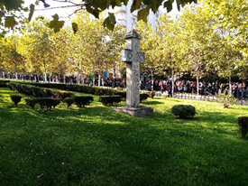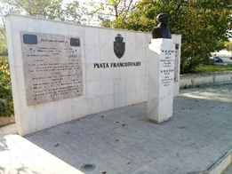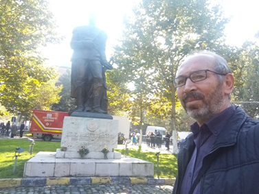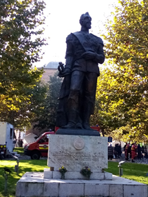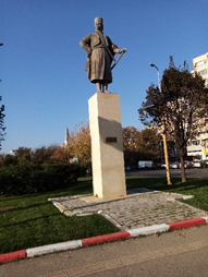 Türk şehitliğine giden yolda bir meydanın içinde Tudor Vladimirescu’nun heykeli yükseliyordu.