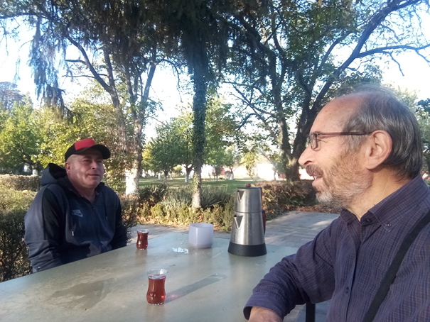 Türk Misafirperverliğini göstererek o güler yüzüyle sıcacık çay ikram ederek sohbet ettik.
