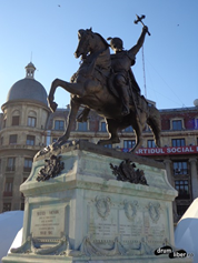 Bronzdan yapılmış heykel, 1874'te Carrier Belleuse tarafından yapılmıştır. Gelişmiş bir ata binen ve yükseltilmiş bir ele tutuşan bir dövüş kılıcı tutan parlak vivodu gösterir. Taş taban dört tarafın her birinde bronz bir arma taşı taşır: ön ve arkada, Romanya Ülkesinin kartalı, bir tarafta Moldova'nın hasırsı, diğer tarafta ise Transilvanya'nın arması.