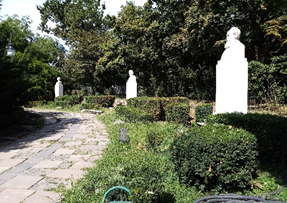 1)Traian Demetrascu (Cișmigiu Bahçesi) büstü Traian Demetrascu , 1800'lerin son dönemine ait bir şair ve broşür yazarıydı, monarşi ve partiler için şakalar yaptı. Heykeltraş Filip Marin tarafından yapılan büstü mermer bir kaide üzerinde oturuyor. Onun yanında sol eliyle çiçeklerle dolu bir elbiseyi tutan genç bir kadın ve sağ eliyle şaire bir buket veriyor. Pervazın dibinde, yazarın en önemli eserlerinin adını taşıyan bir fularla çevrelenmiş bir lir yerleştirilen bir demet defne vardır.