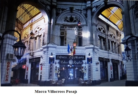 Yabancılara çok çekici gelen, Türk kahvesi ikram edilen ve Mısır’daki bir kahvehane tarzında dekore edilen nargile kafeleri, değerli taş ve takıların satıldığı butikler, hazır giyim mağazaları bulunam bir pasaj. Sarı ve yeşil camdan tavanla kaplı olan bu pasajın yapımı 1891 de tamamlanmıştır. Pasajın bir kapısı Zafer Bulvarına çıkarken diğer kapısı tarihi Lipscani’ye açılmaktadır.