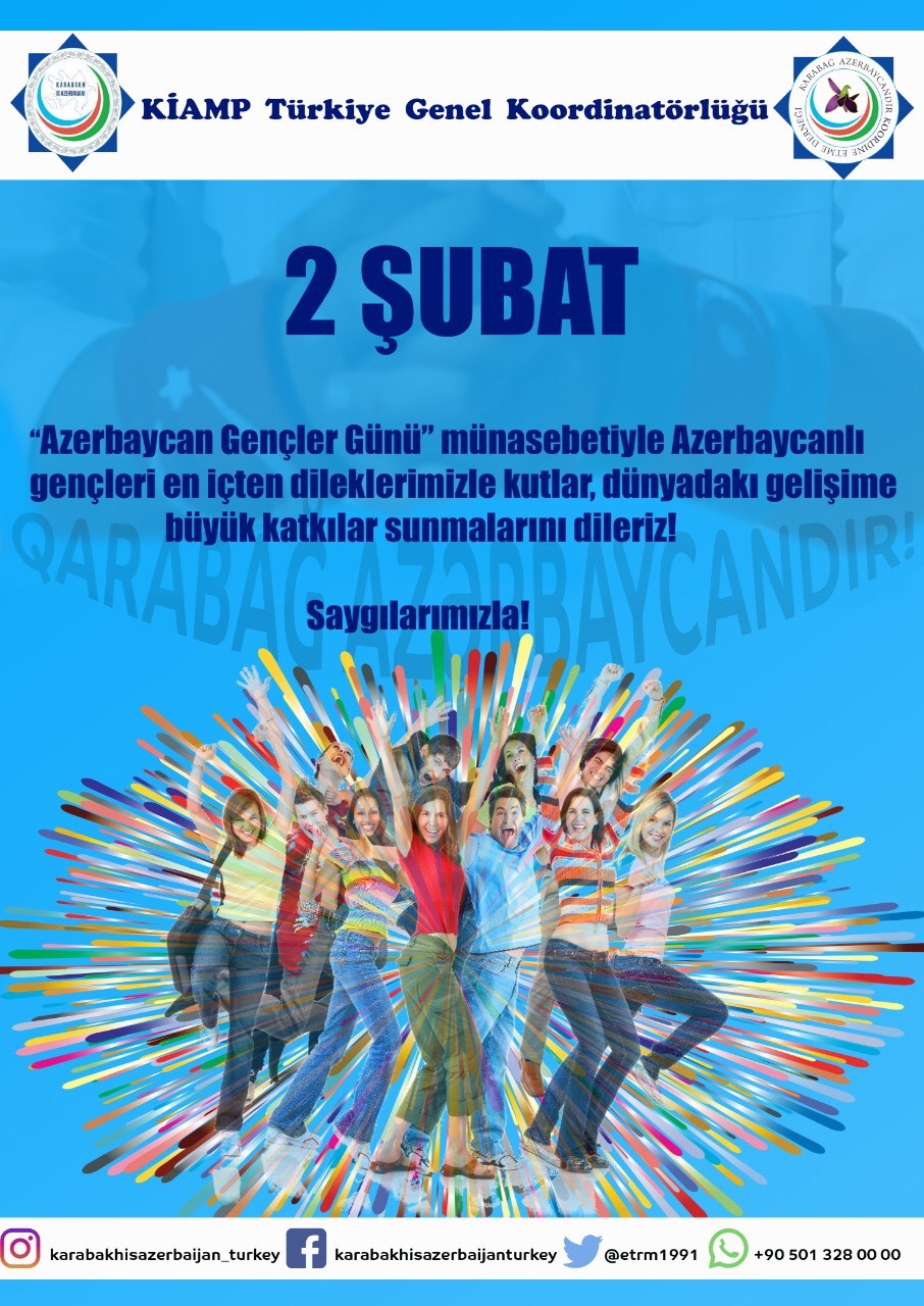 Bu vesile ile Karabakh is Azerbaijan Milli Platformu Türkiye Genel Koordinatörlüğü, Karabağ Azerbaycan’dır Derneği ve AGİH-Azerbaycan Gençlerinin İstanbul Hemreyliyi Sivil Toplum Kuruluşu olarak bizler de tüm gençlerimizi en içten dileklerimizle kutlar; Türk Dünyasına ve dünyadaki gelişime büyük katkılar sunmalarını dileriz!